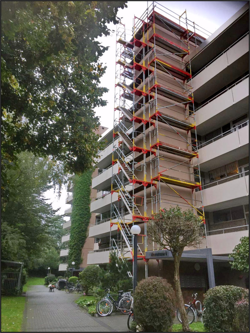 vorgeschrieben ist. Das Fassadengerüst kann nahezu beliebig in Höhe und Breite variiert werden und ist damit vielseitig verwendbar.